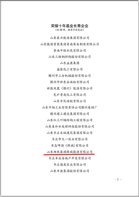 1月15日上午,由棗莊市工信局、市企業(yè)家協(xié)會(huì)、市企業(yè)聯(lián)合會(huì)、市工業(yè)經(jīng)濟(jì)聯(lián)合會(huì)(市企聯(lián)三會(huì))主辦的“棗莊企業(yè)家活動(dòng)日”在新城舉行,山東濰焦集團(tuán)薛城能源公司榮獲“榮耀十年基業(yè)長青企業(yè)”稱號。
